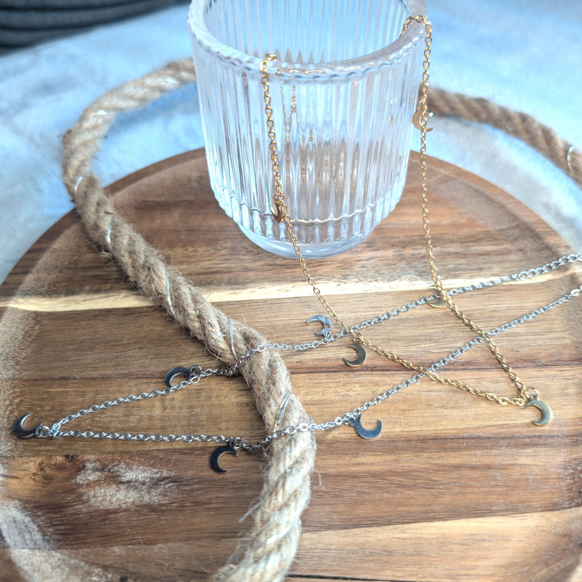 Unleash your inner moon-goddess 🌕, the Luna Choker blends celestial elegance with everyday strength. Featuring a delicate crescent moon charm set on a waterproof, gold-plated stainless steel chain, it’s your luminous companion from morning rituals to midnight moments.