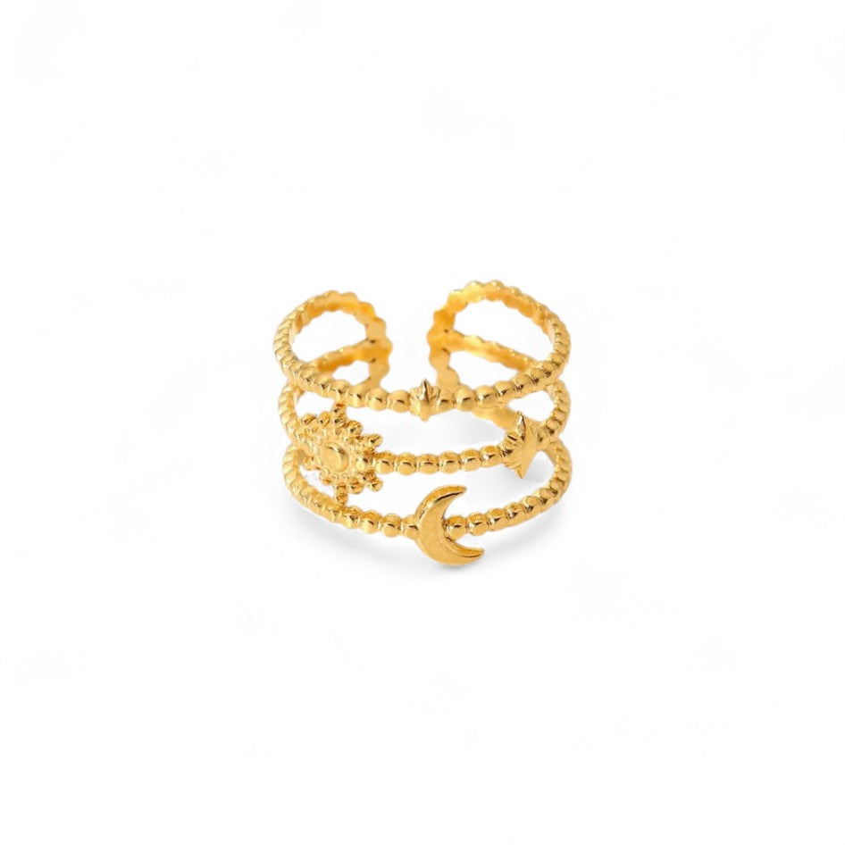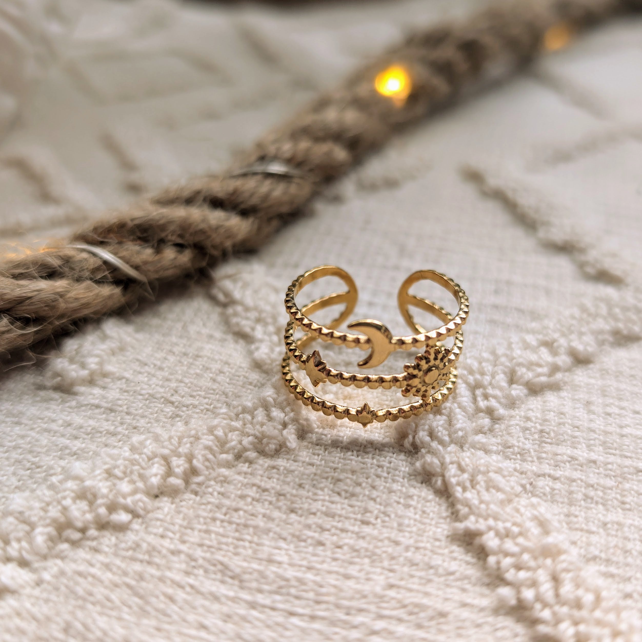 The Luna Ring captures the elegant simplicity of the night sky with its sleek crescent design, crafted from waterproof, gold-plated stainless steel. Inspired by quiet lunar beauty, this ring accompanies you from morning meetings to evening wanderings, bringing a gentle reminder of intuition and renewal.