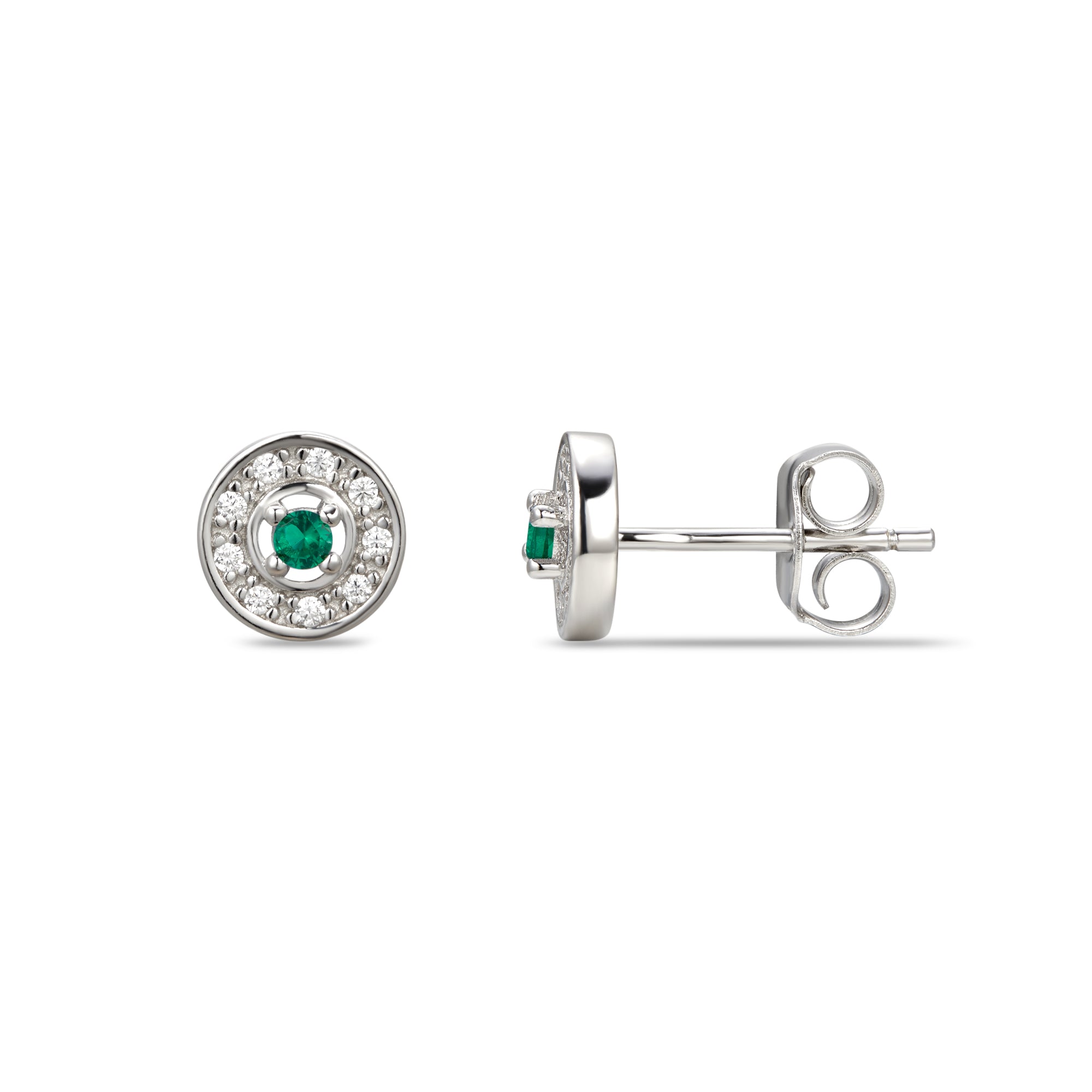 Elegant and timeless, these May Birthstone Cubic Zirconia Sterling Silver Stud Earrings are a beautiful way to celebrate a May birthday or simply enjoy a classic pop of colour. Crafted from 925 sterling silver, each stud features a emerald green cubic zirconia at the centre, surrounded by a delicate halo of sparkling clear CZ stones for added brilliance.