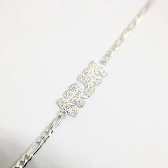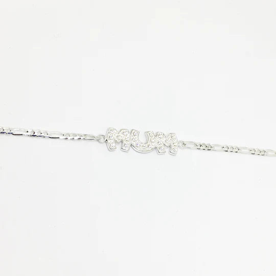 Our Mum cubic zirconia Bracelet, crafted with 925 sterling silver and showcases a delicate chain adorned with shimmering Cubic Zirconia stones.