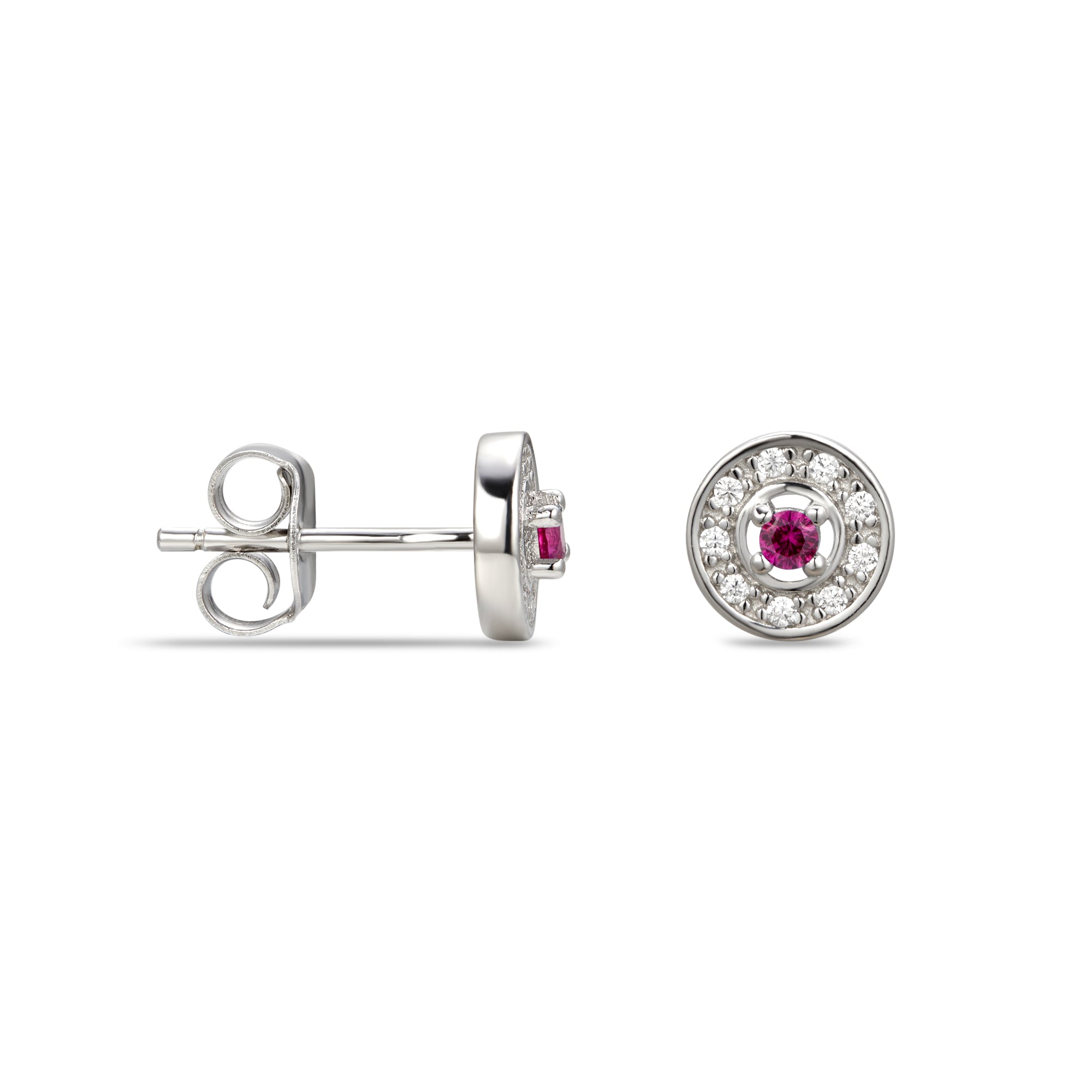 Elegant and timeless, these July Birthstone Cubic Zirconia Sterling Silver Stud Earrings are a beautiful way to celebrate a July birthday or simply enjoy a classic pop of colour. Crafted from 925 sterling silver, each stud features a warm ruby coloured cubic zirconia at the centre, surrounded by a delicate halo of sparkling clear CZ stones for added brilliance.