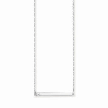 Introducing our elegant Sterling Silver Bar Necklace With Cubic Zirconia. This stunning piece is crafted with a sleek silver bar and adorned with a sparkling cubic zirconia stone.