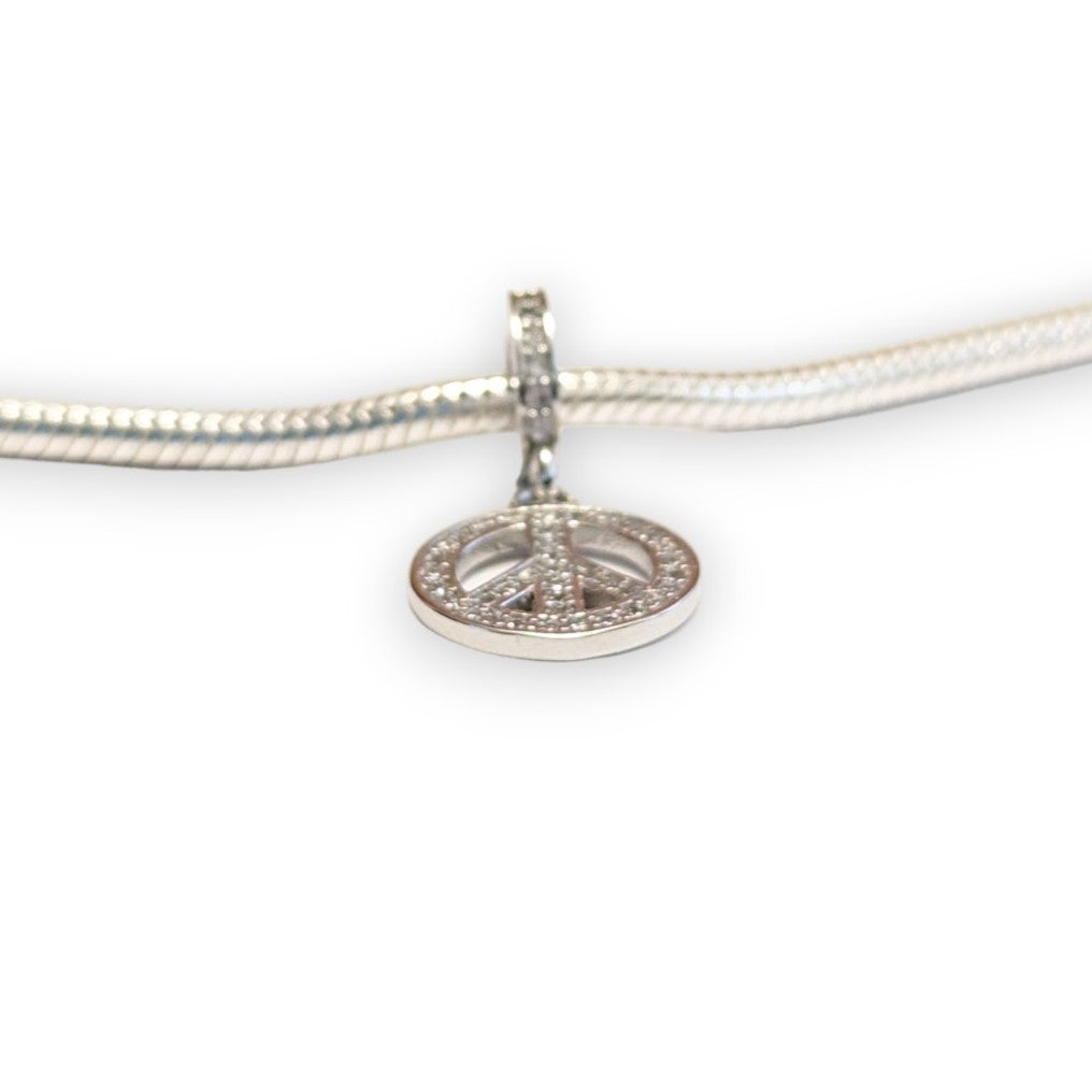 Celebrate harmony and self-expression with the our Peace Dangle Charm. Made from high-quality 925 sterling silver, this beautifully crafted piece features the timeless peace symbol adorned with sparkling cubic zirconia stones for a subtle yet meaningful shine.