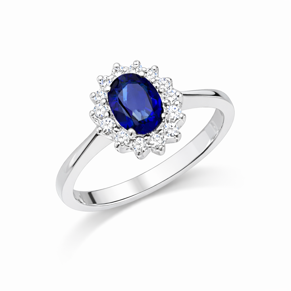 Our Sapphire Cluster Ring. Made from 925 sterling silver, adorned with saphire cubic zirconia, with a halo of clear cubic zirconia.