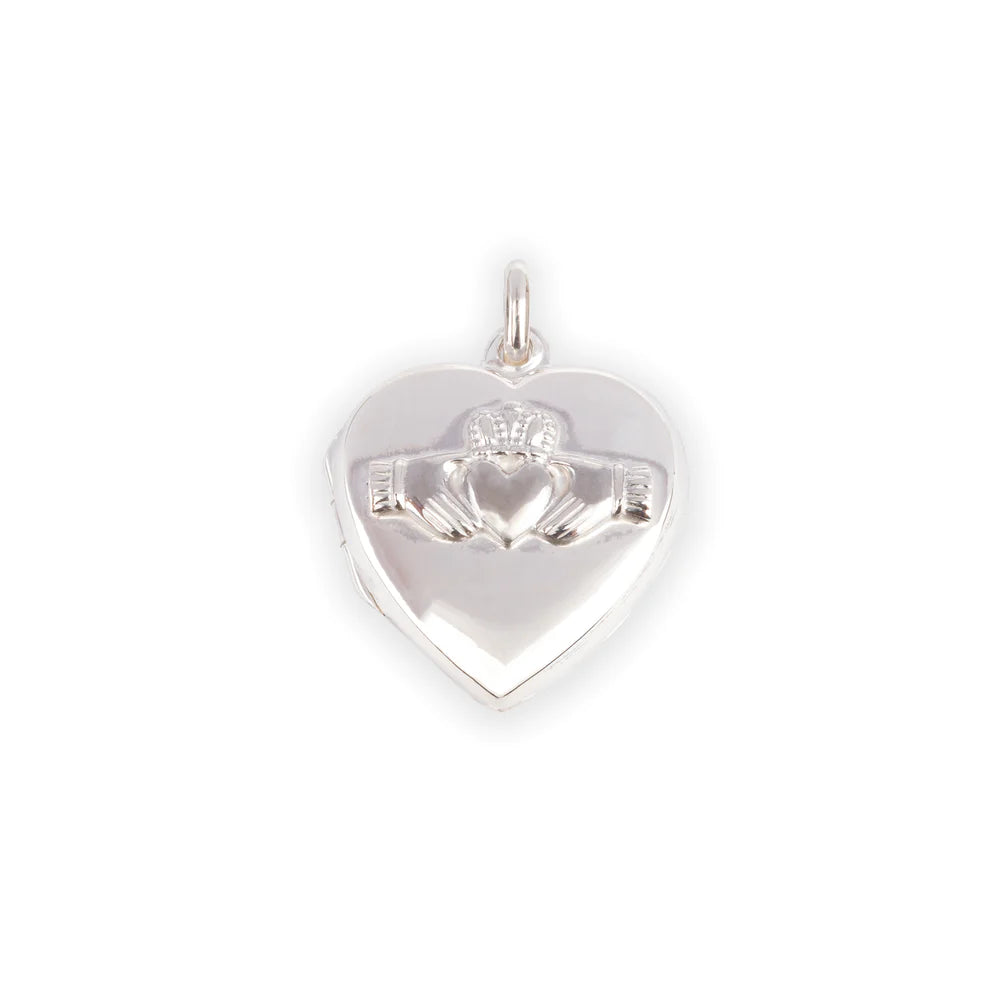 Silver Claddagh Heart Locket With Necklace. Our high-quality silver locket features a claddagh design on a plain heart design.