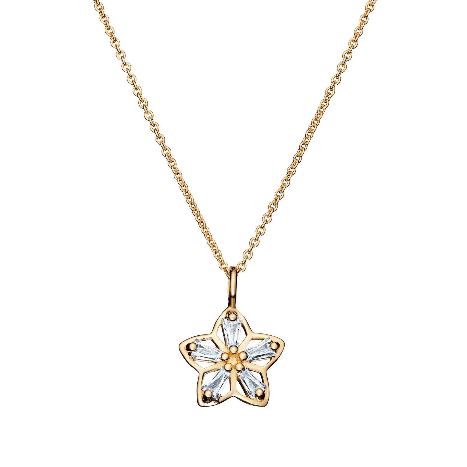 Delicate and feminine, the Leilani Flower Pendant Necklace features a charming floral design crafted from 18ct gold plated 925 sterling silver. Set with a cluster of sparkling clear cubic zirconia stones, this pretty piece brings a touch of elegance and light to any look.