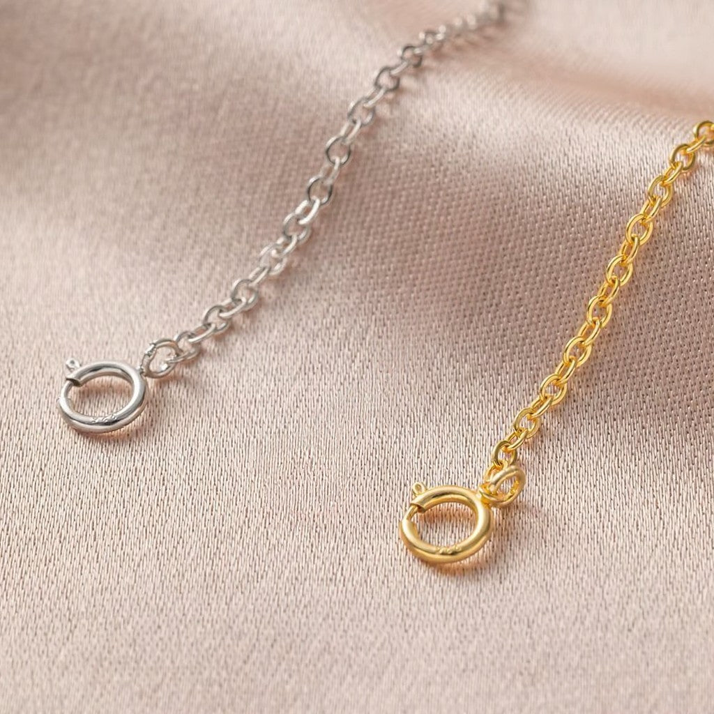 Refined and versatile, these chain extenders are crafted in your choice of radiant gold plating or timeless silver. Measuring 5cm (approximately 2 inches), they offer the perfect solution for gracefully extending your cherished necklaces, ensuring both comfort and elegance. An essential finishing touch for those who appreciate effortless luxury in every detail.