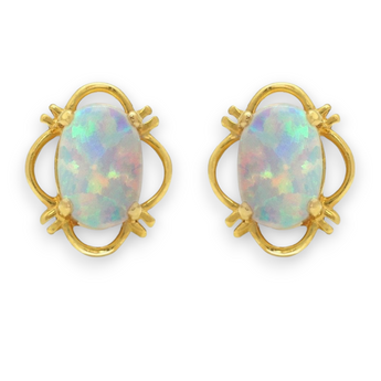 Our Oval Opal Clover Stud Earrings. Crafted from high-quality 9ct gold and featuring stunning oval opal stones.