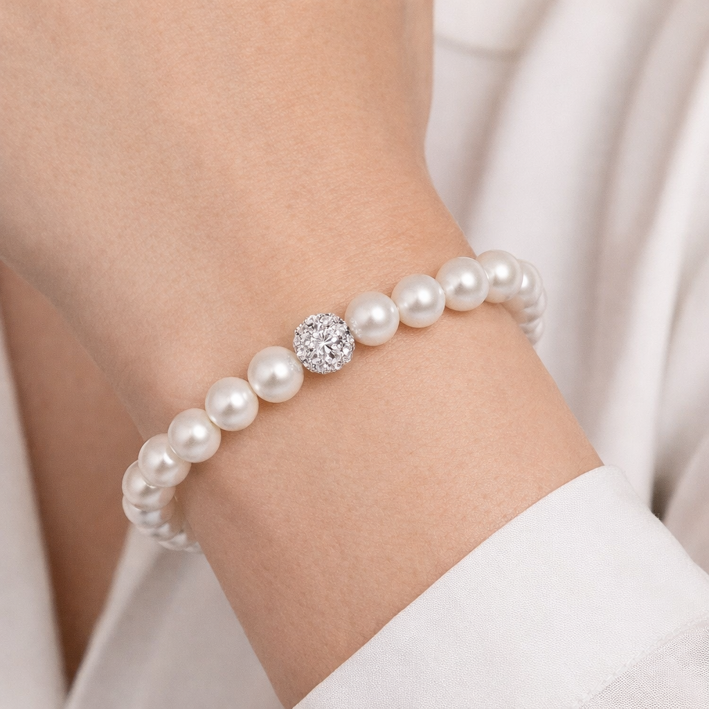 Effortlessly elegant and easy to wear, our Stretchy Pearl Bracelet with CZ brings classic charm with a modern twist. This bracelet features lustrous pearl-effect beads strung on a comfortable stretchy band, interspersed with sparkling cubic zirconia accents for a subtle touch of glamour.