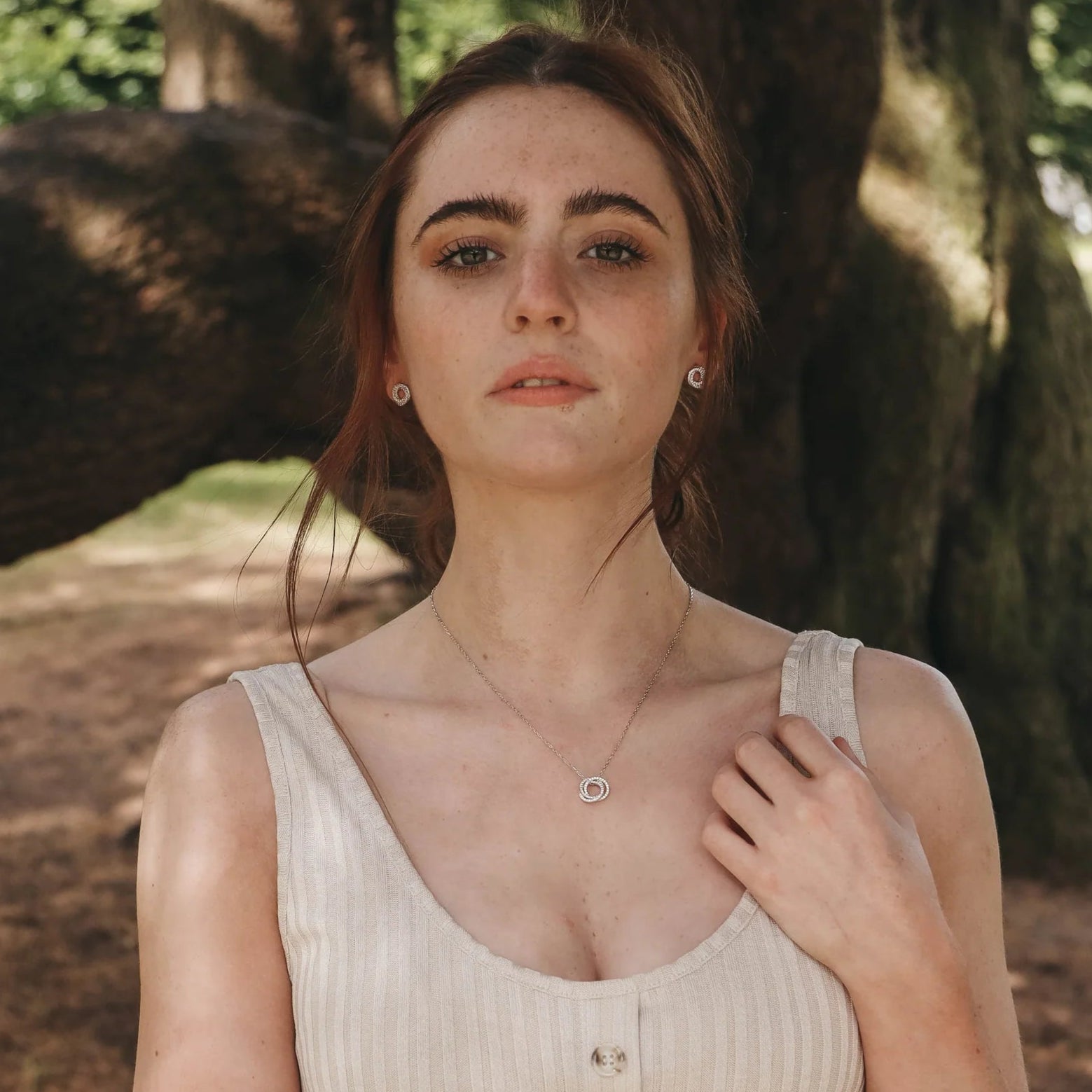 Our Layered circle cz necklace made from 925 sterling silver and layered in gold, rose gold and rhodium plating and adorned with cubic zirconia.