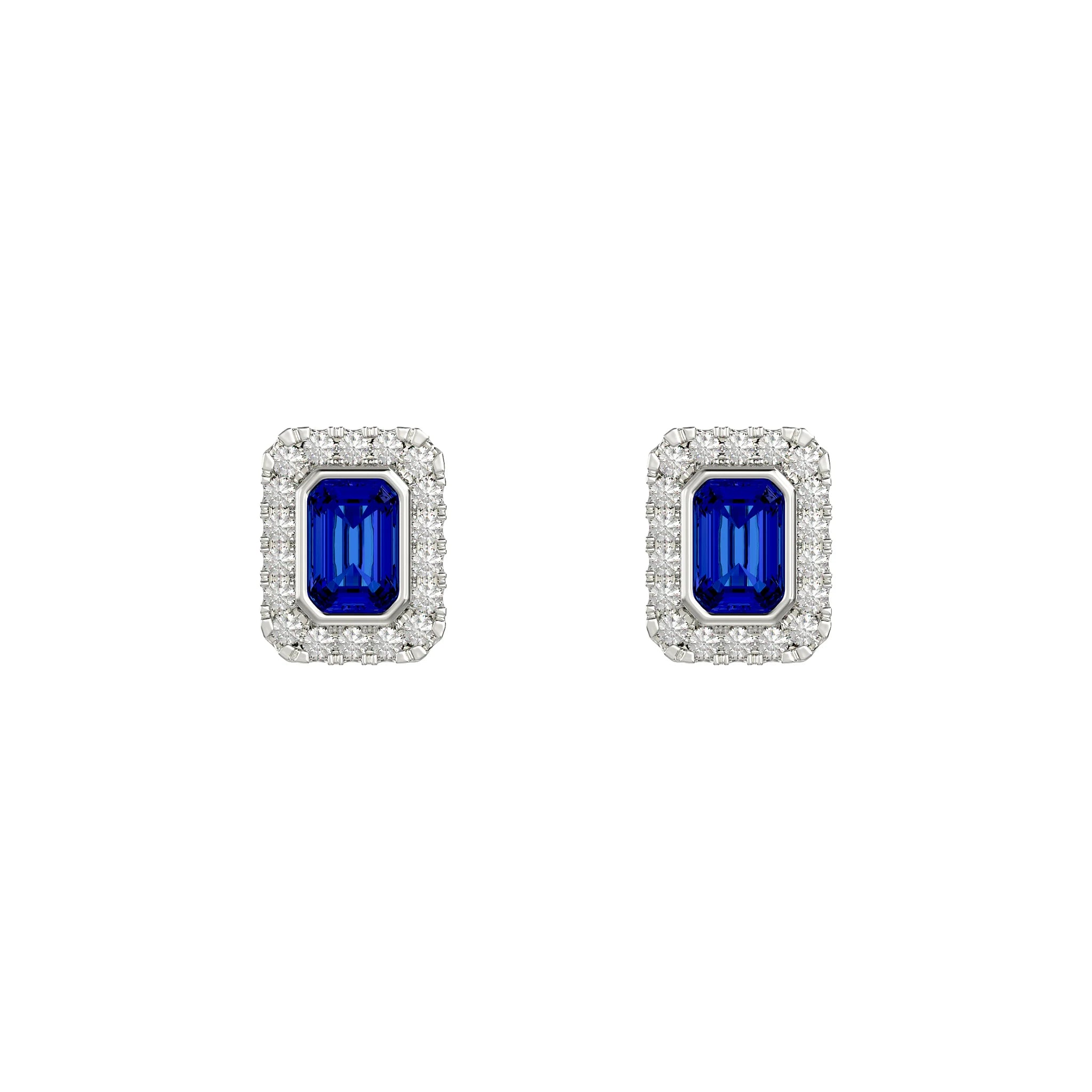 Sapphire Rectangle Halo Stud Earrings