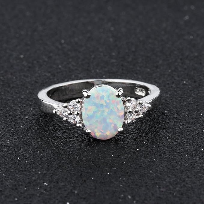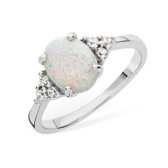 Our Oval Opal and Cubic Zirconia Ring. Crafted with 925 sterling silver with an oval opal and sparkling cubic zirconia.